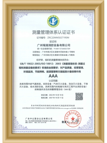 測量管理體系認(rèn)證證書